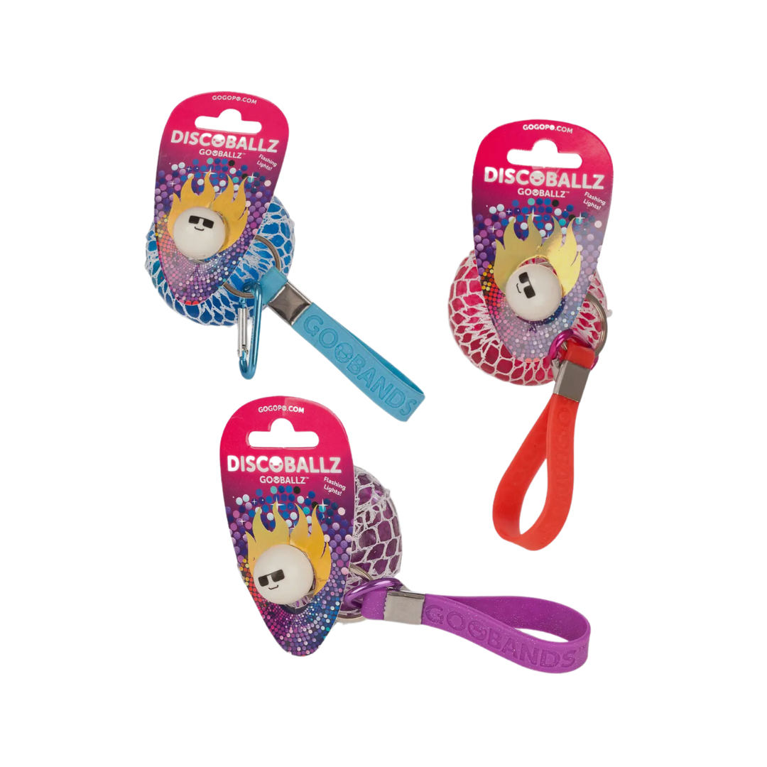 Each item has a silicone wristband keyring clip and a carabiner to attach to a child's backpack, and this limited edition includes a flashing light inside!
