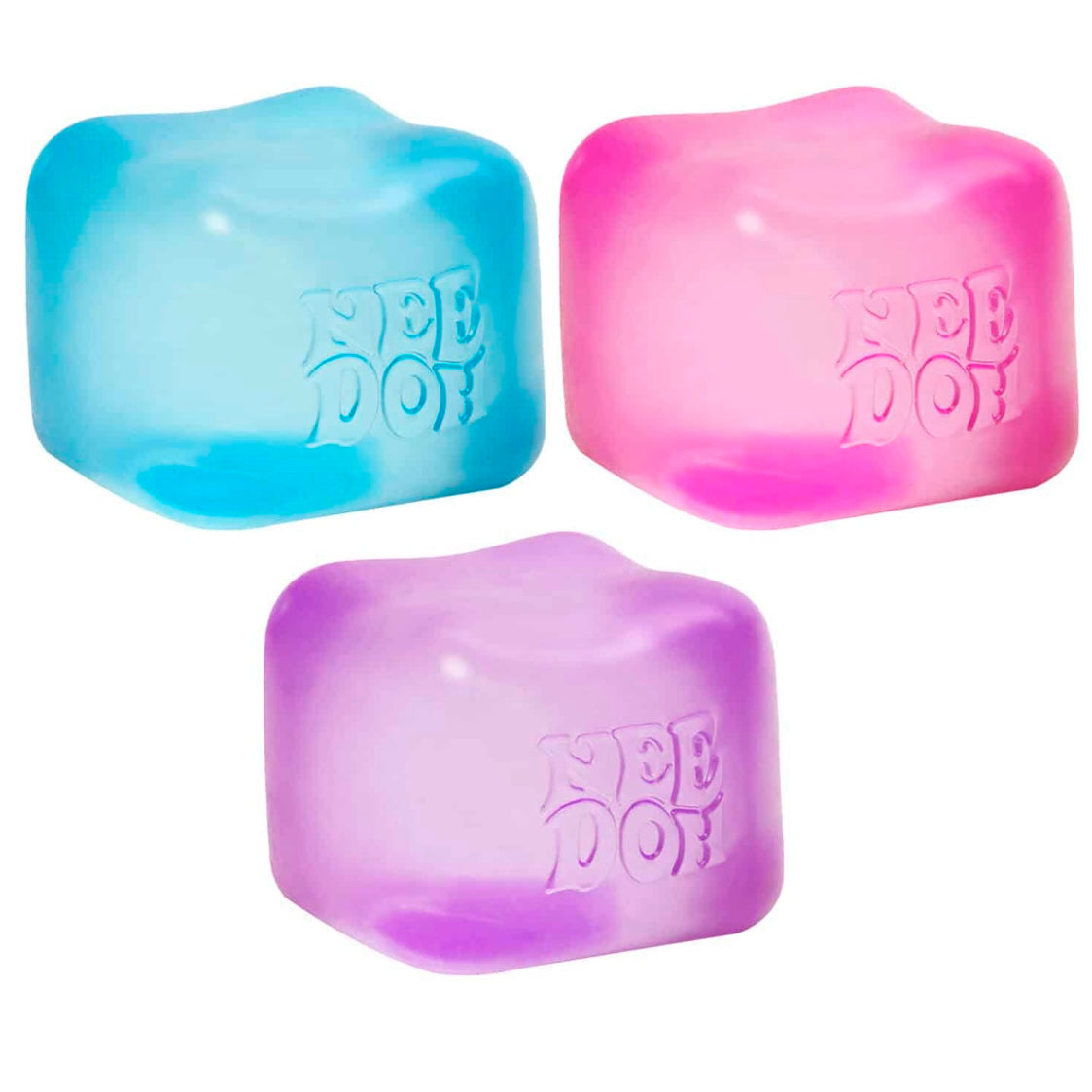 The squishy, squeezy square sensation! Squish it, Squeeze it! It always goes back to its square shape. Cube shaped Nee Doh that is cool to the touch. It's the Squish that Resists! Try it and you'll see...It's Hip to be Square! Nice Cubes contain a thick clear gel that always returns to its original cube shape after a serious squeeze session.