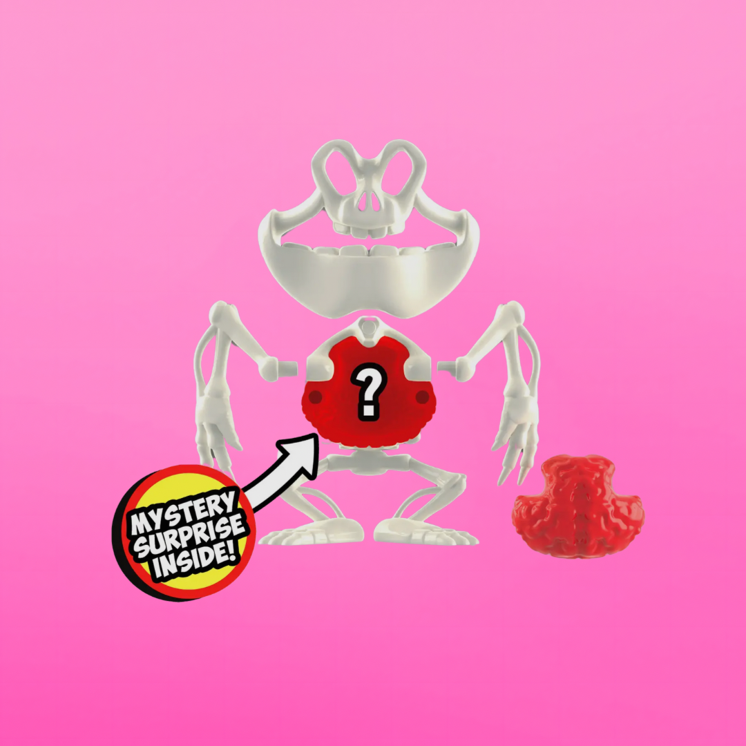 Gooblins are a whole new kind of unboxing experience! Each of these six out-of-this-world gooey, stretchy, slimy alien creatures contain a skeleton which can be removed from the gooey character. Dig through the goo to find spooky bones and organs! Open up your Gooblin's stomach to discover the surprise item that they had for lunch! Gooblin skeletons can be assembled into different forms and the Gooblins gel does not dry out to provide hours of stretchy, slimy fun!