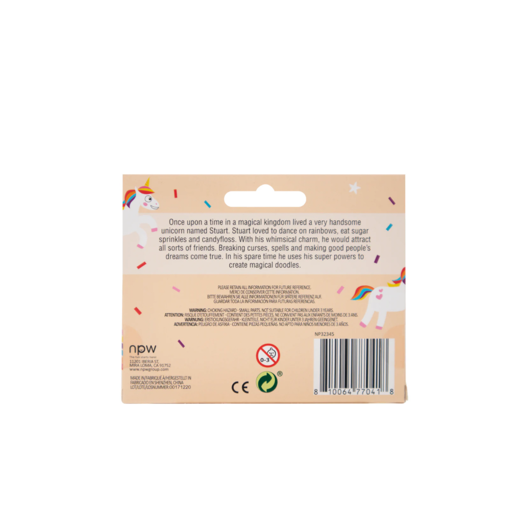 Make your memos more mystical with our magical unicorn pen. The white unicorn has a multicolored tail and mane and will stand proudly on your desk. It has a golden horn and writes in black ballpoint ink.